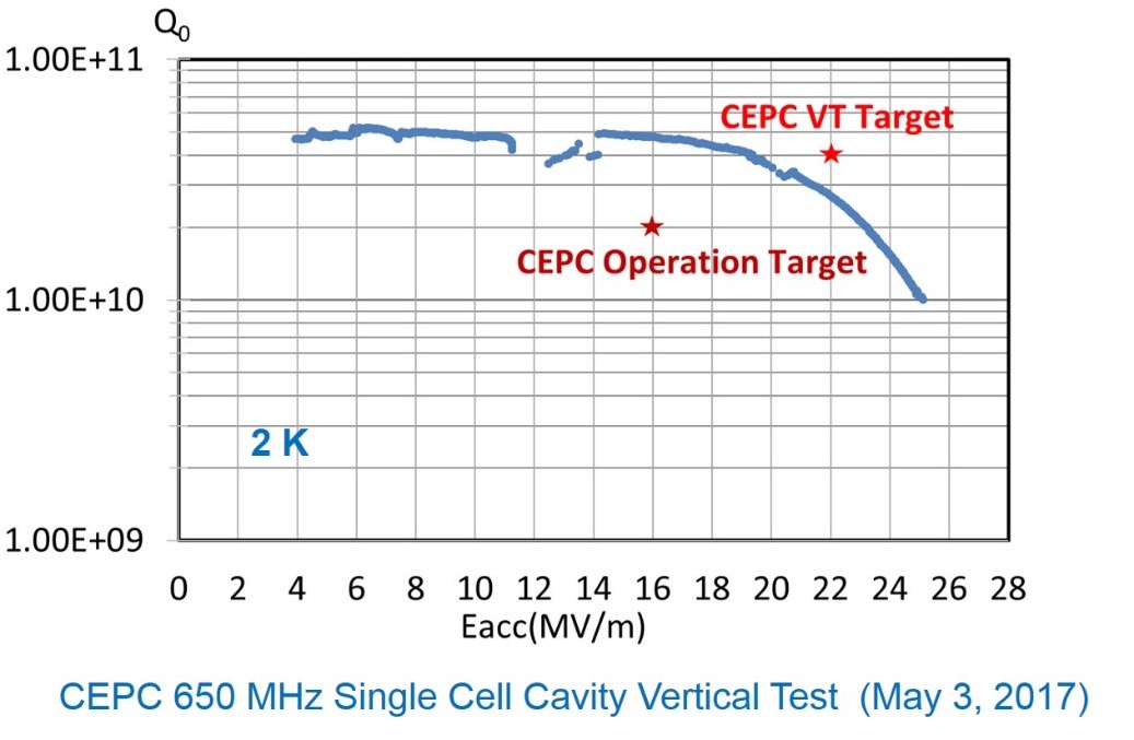 | A prototype of 650 MHz single cell cavity for CEPC was tested at the Institute of High Energy Physics (IHEP) on May 3rd, 2017, which is for high-Q research of CEPC cavities. |
